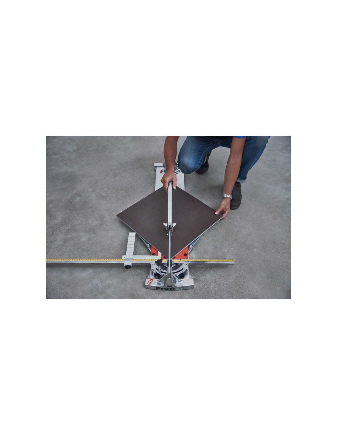 Egy nagyon masszív, állítható fémvonalzóval és a rajta elhelyezkedő szögbeállítóval van felszerelve, mely egy szerkezeti elemből van kialakítva. Nagy előnye, hogy a vonalzón tetszés szerint tolható a goniometrikus négyzet. Ez mindig segíti a felhasználót a pontos méret beállításában és közvetlen leolvasásában, mert a csempe a vonalzóval egy szintben marad. Ráadásul segíti a csempe megtámasztását, hogy az vágás közben teljesen fix helyzetben maradjon, átlós helyzetben is.