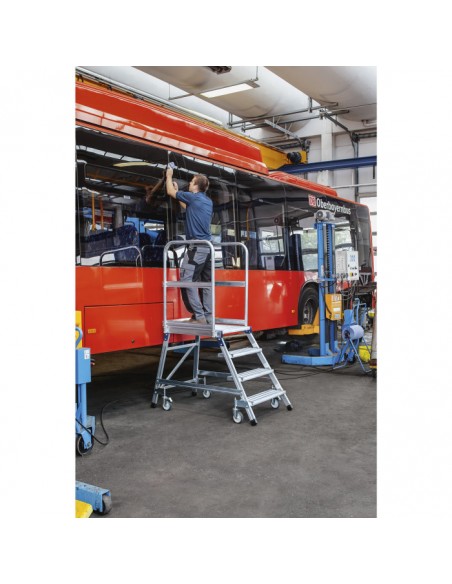 Biztonságos és könnyű megoldás a rugalmas munkavégzéshez: kényelmes felmászás, a négy rugós keréken állásbiztonság és könnyű kezelhetőség.