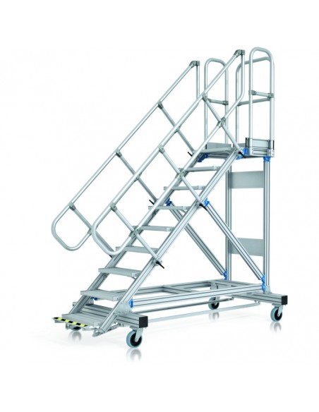 Mozgatható hozzáférési vagy munkadobogó kényelmes feljutással. Ideális az elhúzódó munkákhoz, szerszámmal is, és akár gyakori helyváltoztatással is. Nagyméretű dobogó korláttal a biztonságos és ergonomikus munkavégzéshez a magasban.