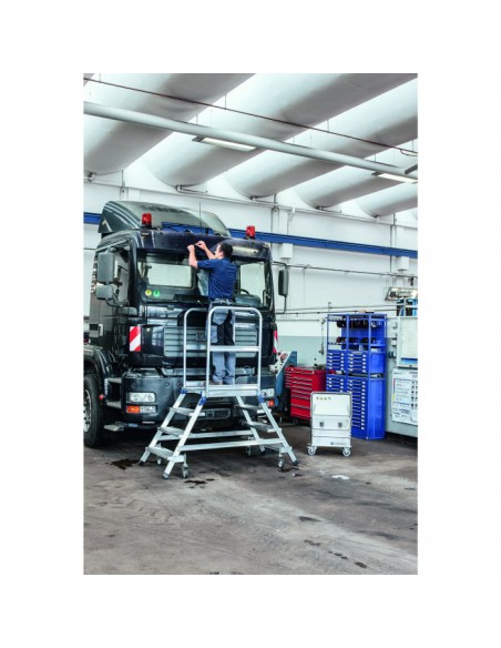 Maximális rugalmasság a fel- és lejutásnál, nagyobb munkatér a lépcsőfokokon, nagyobb mobilitás, valamint állásbiztonság a négy rugós keréken.