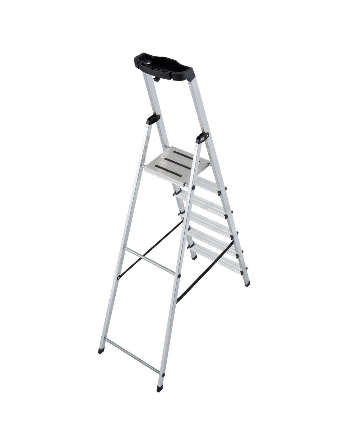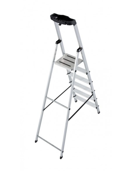 Könnyű és biztonságos lépcsőfokos állólétra ergonomikus kialakítású, multifunkcionális tálcával és csúszásmentes dobogóval.