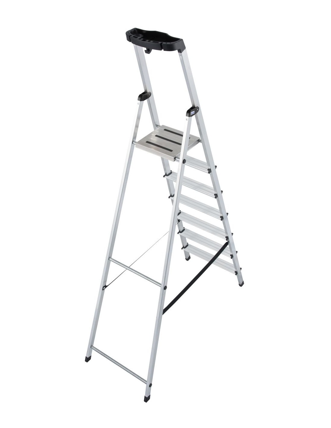 Könnyű és biztonságos lépcsőfokos állólétra ergonomikus kialakítású, multifunkcionális tálcával és csúszásmentes dobogóval.