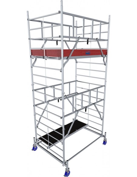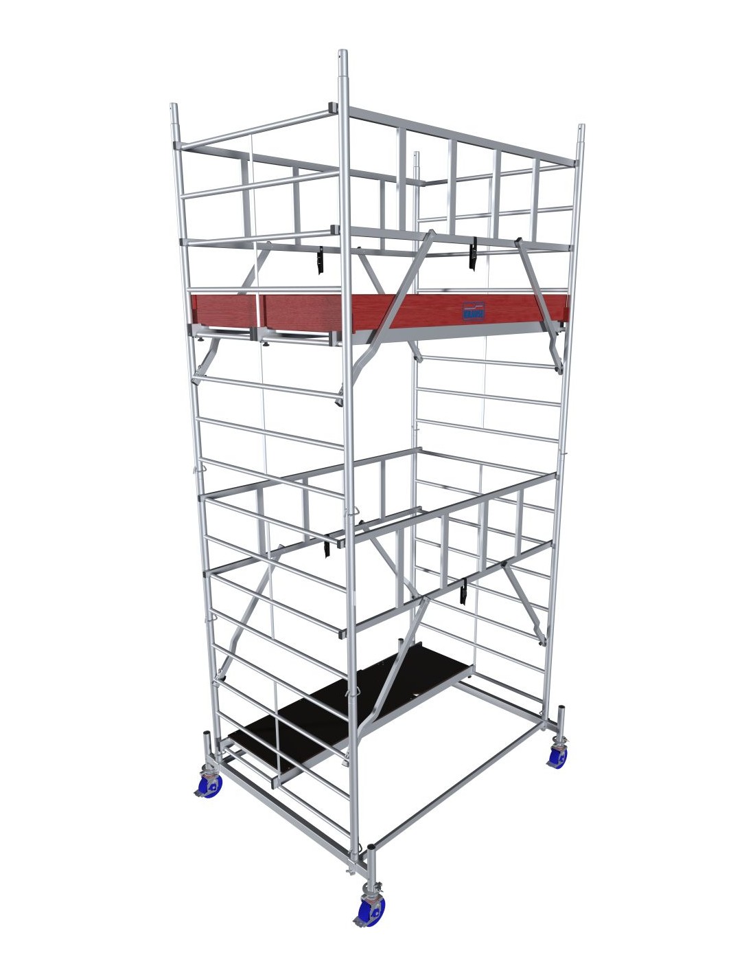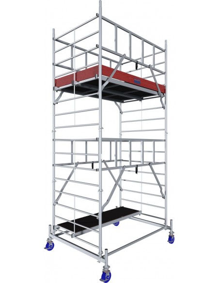 A nagy szilárdságú acél kitámasztók 4,30 m munkamagasságtól optimális stabilitást biztosítanak