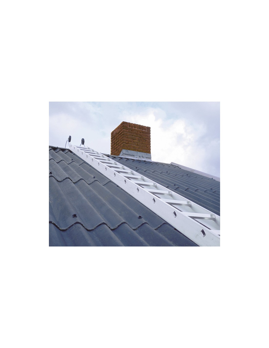Horganyzott acél kampó, két futó görgővel. A tetőlétrát a rászerelt tetőgerinc kampó görgőinek segítségével a gerinchez lehet tolni, majd megfordítani és a gerincbe akasztani.