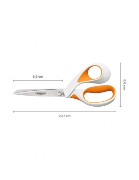 A 21 cm-es Fiskars RazorEdge™ varróolló innovatív technológiát, figyelmesen tervezett funkciókat és fejlett ergonómiát biztosít a hosszú, éles átvágások érdekében. A hosszú, legélesebb RazorEdge prémium rozsdamentes acél pengék tiszta vágást végeznek egészen a hegyük végéig, ami elengedhetetlen az anyag megmunkálásához. A nagyobb, ergonomikus kialakítású fogantyú természetesen illeszkedik a kezéhez, a Softgrip pedig nagyobb kényelmet és irányítást biztosít. 1967 óta, és több mint egymilliárd eladott párral, a Fiskars ollói világszerte elnyerték a varrás szerelmeseinek generációinak szívét. Ugyanez igaz ma is. Minden kreatív projjektjábevágjon bele egy legendával.