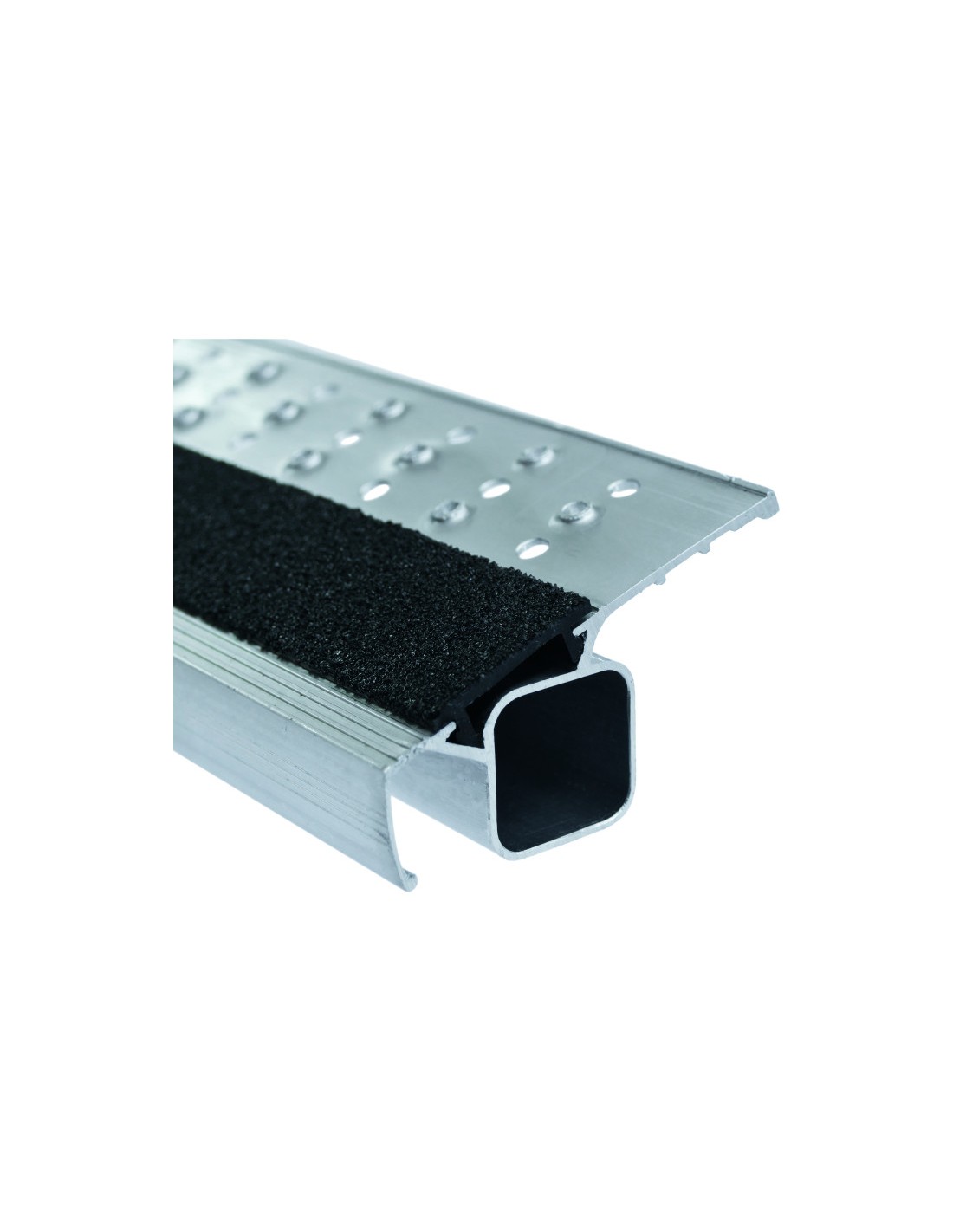 80 mm mély profilozott lépcsőfokok R13-as bevonattal és a folyadékok elvezetésére szolgáló perforációval.