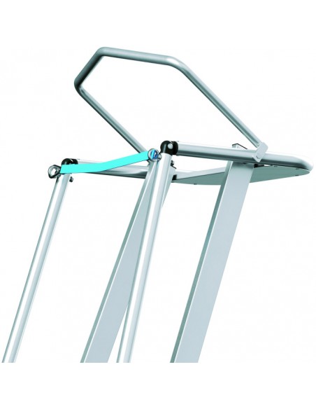 A létra könnyen és gyorsan összecsukható a dobogón található fogantyú segítségével.