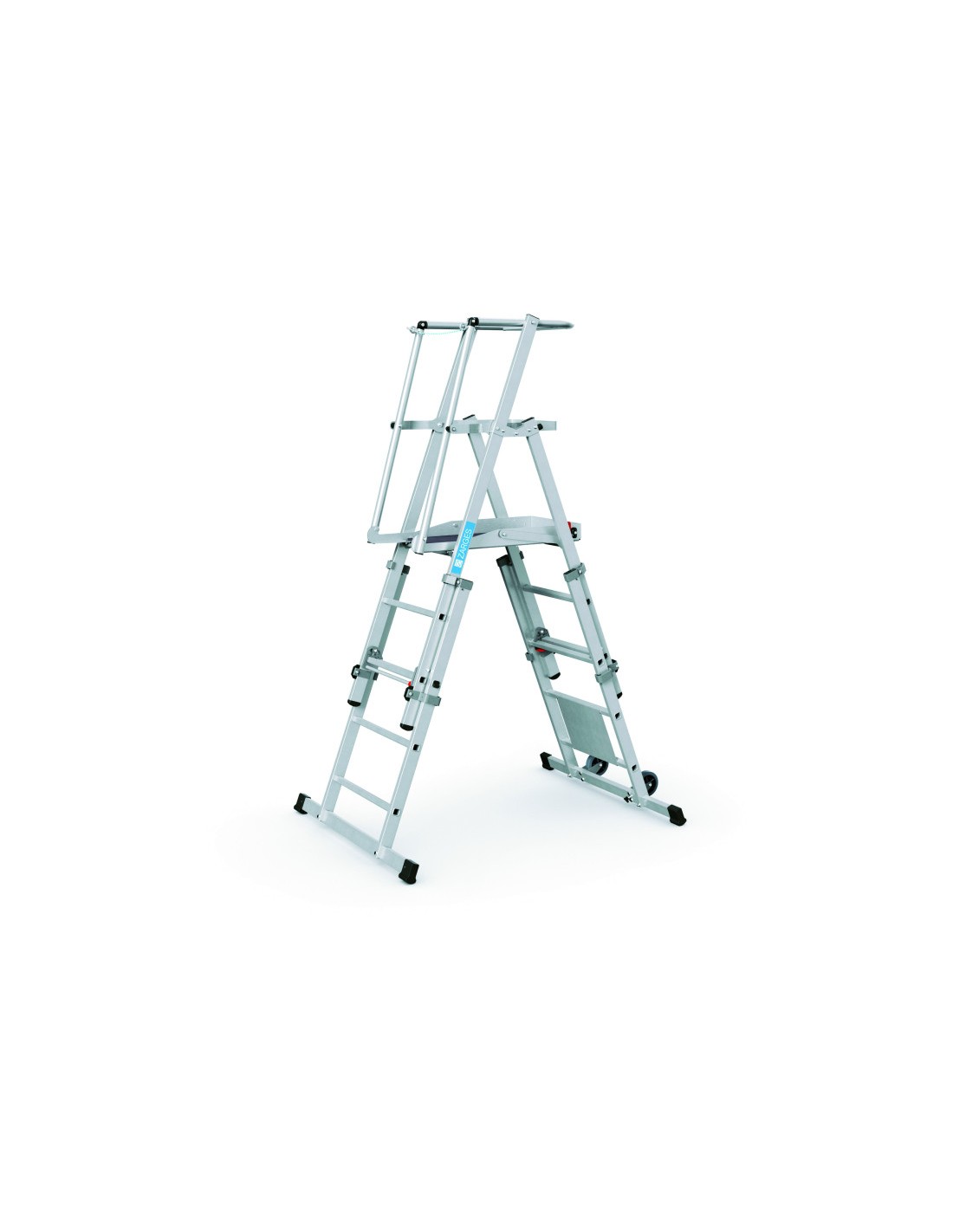 Állítható magasságú dobogó nagy állófelülettel. körbefutó korláttal a biztonságos és kényelmes állásért.
