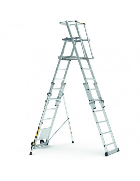 Állítható magasságú dobogó nagy állófelülettel. körbefutó korláttal a biztonságos és kényelmes állásért.