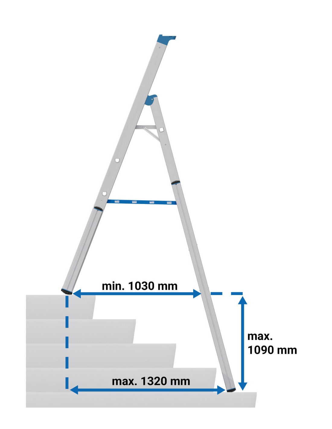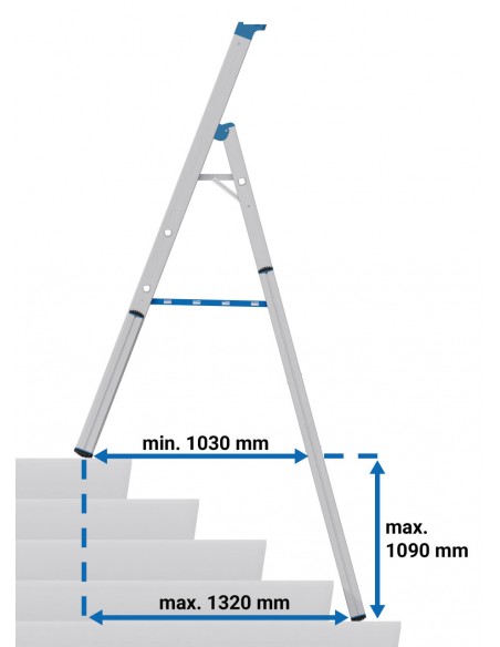 Profilozott, megerősített D-lépcsőfokok, 80 mm mély, a biztonságos feljutás és kényelmes állás érdekében. A TRBS 2121-2 szabványnak megfelelően a lépcsőfokok munkahelykéntis használhatók