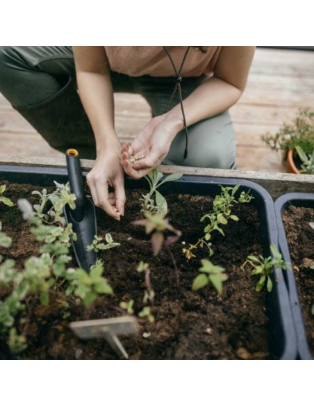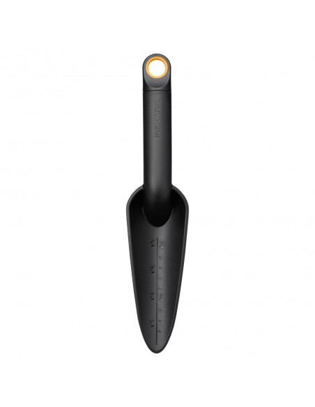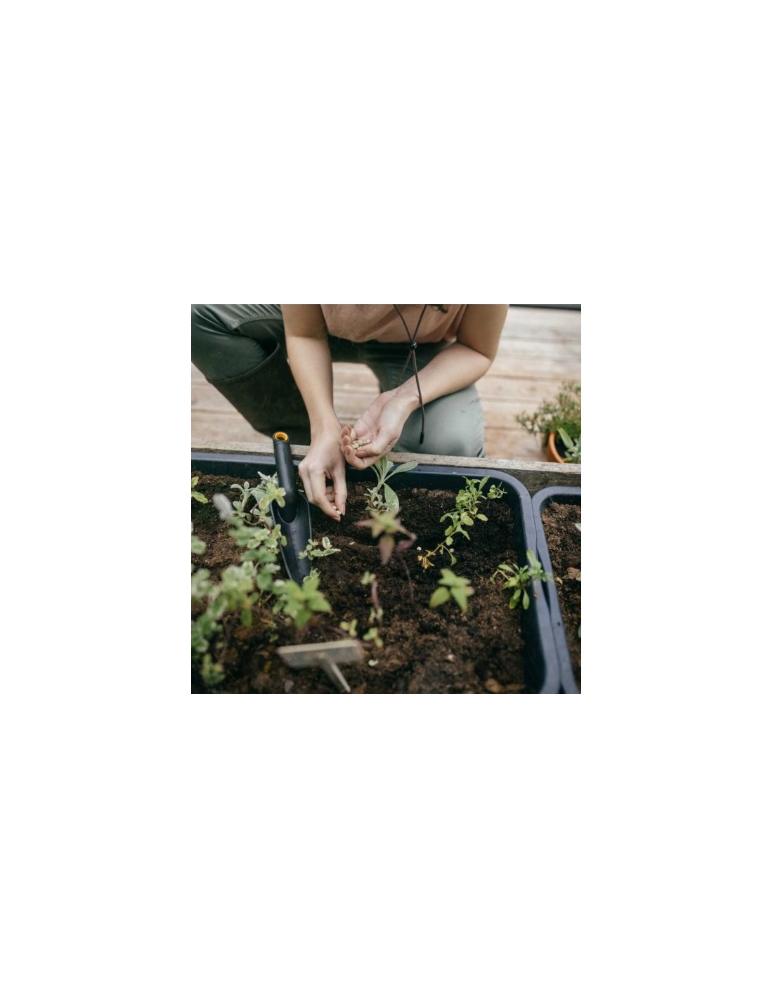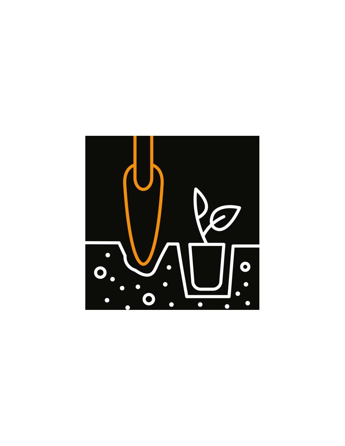 A Fiskars Solid™ Transplanter a felelősségteljesen előállított, újrahasznosított, kiváló minőségű kerti kéziszerszámok sorozatának része, amelyek tartósak és kényelmesek. A kerti átültetőgép 65%-ban újrahasznosított műanyagból készült, üvegszálakkal a szilárdság érdekében, keskeny, ívelt feje finomított éllel ideális palánták, hagymák és kis növények átültetésére, még szűk helyekre is. Az ültetőkanál UV-álló is, hogy ellenálljon az elemeknek. Az ergonomikus kialakítású fogantyú csökkenti a kéz fáradását, míg a kényelmes akasztónyílás egyszerű tárolási lehetőségeket kínál.
