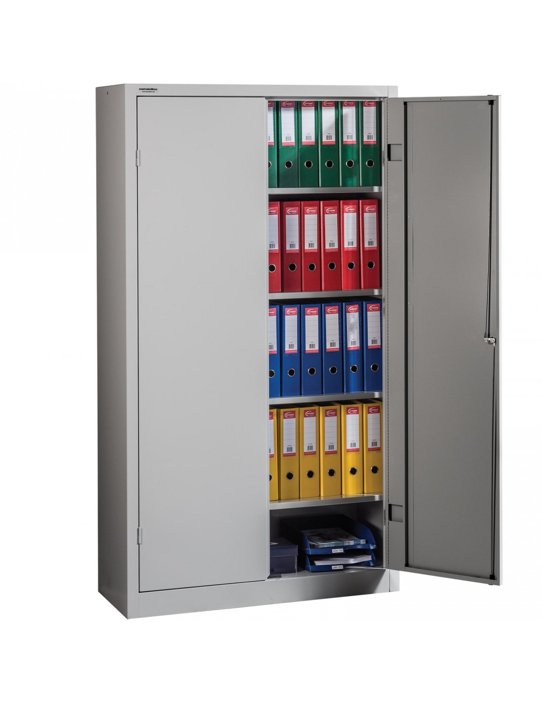 A 30 kg teherbírású polcokon irodai mapparendszerek, kisebb alkatrészek és könnyebb szerszámok is biztonsággal elhelyezhetőek, a 2 pontos zárszerkezetnek köszönhetően pedig a szekrény maximálisan megbízható. Elsősorban akkor ajánljuk ezt a szekrényt, ha nincs szükség nagy teherbírást igénylő alkatrészek és szerszámok tárolására.